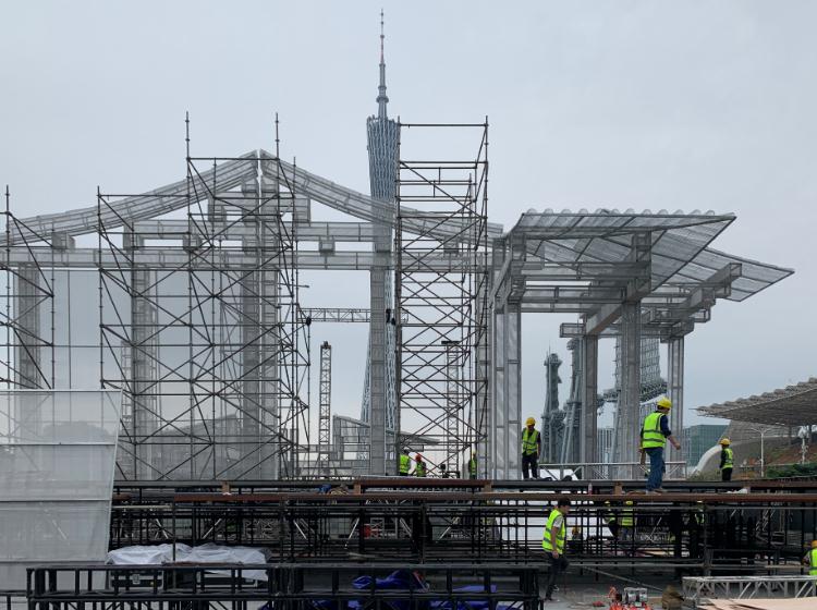 2020广州国际灯光节,灯光作品“时空·共生”将与广州塔共舞,“时空·共生”主体是一栋中国传统建筑,总高13米8,分为三层,并安装巨幅轻薄屏幕和轨道装置,在展示过程中,能够实现开合。